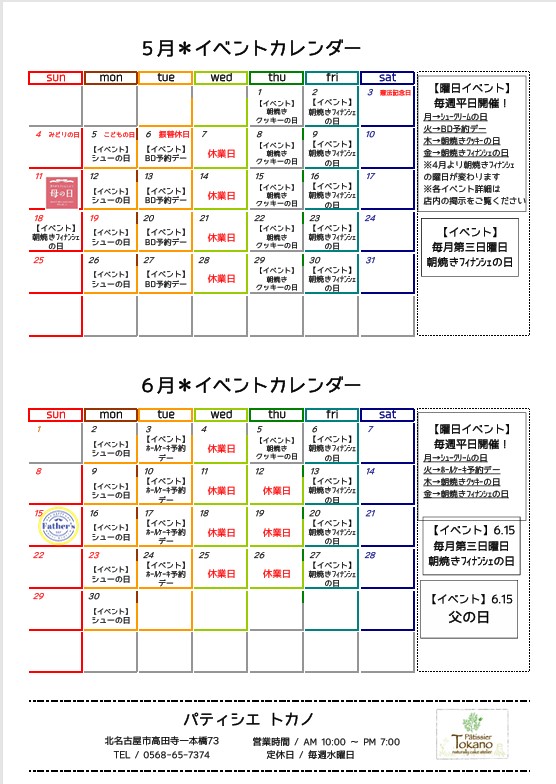 6月のイベントカレンダーが変更となりました。誠に申し訳ございません。よろしくお願い申し上げます。