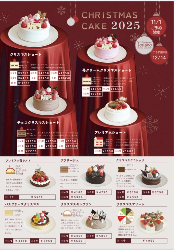 クリスマスケーキのご予約は11月1日受付スタート!11月中のご予約で300円引きの早トクキャンペーンもあります!みなさまのご予約お待ちしております!