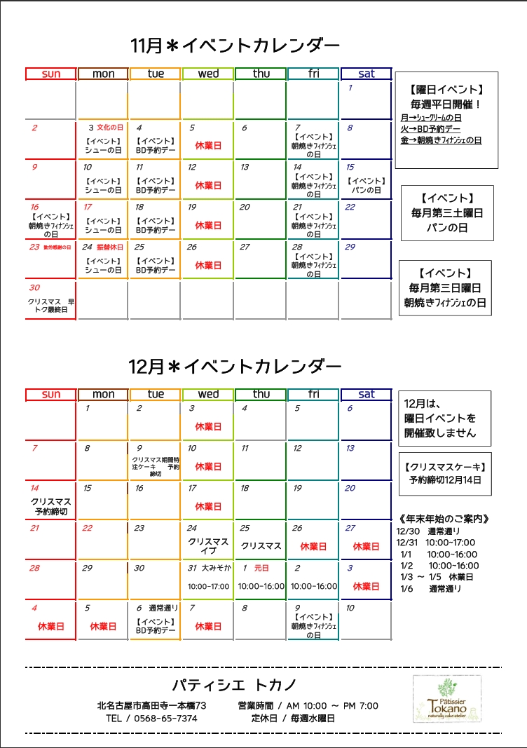 • 2025年11月1日お知らせイベント11月12月イベントカレンダー